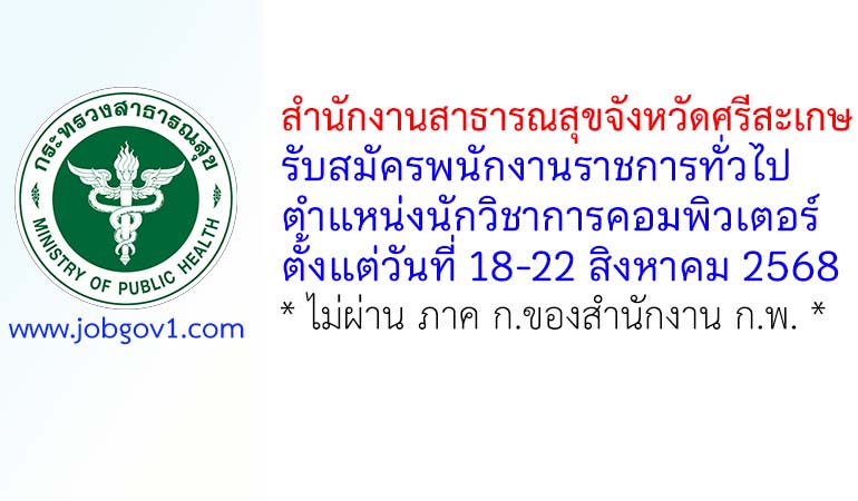 สำนักงานสาธารณสุขจังหวัดศรีสะเกษ รับสมัครพนักงานราชการทั่วไป ตำแหน่งนักวิชาการคอมพิวเตอร์ ตั้งแต่วันที่ 18-22 สิงหาคม 2568
