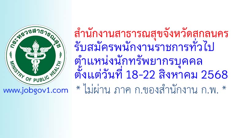 สำนักงานสาธารณสุขจังหวัดสกลนคร รับสมัครพนักงานราชการทั่วไป ตำแหน่งนักทรัพยากรบุคคล ตั้งแต่วันที่ 18-22 สิงหาคม 2568