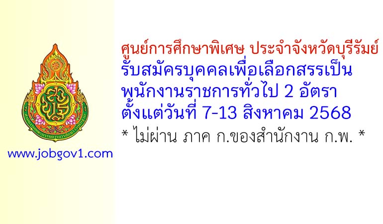 ศูนย์การศึกษาพิเศษ ประจำจังหวัดบุรีรัมย์ รับสมัครบุคคลเพื่อเลือกสรรเป็นพนักงานราชการทั่วไป 2 อัตรา ตั้งแต่วันที่ 7-13 สิงหาคม 2568