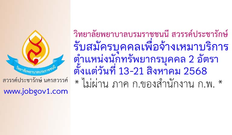 วิทยาลัยพยาบาลบรมราชชนนี สวรรค์ประชารักษ์ นครสวรรค์ รับสมัครบุคคลเพื่อจ้างเหมาบริการ ตำแหน่งนักทรัพยากรบุคคล 2 อัตรา ตั้งแต่วันที่ 13-21 สิงหาคม 2568