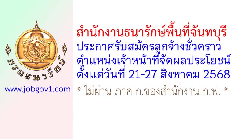 สำนักงานธนารักษ์พื้นที่จันทบุรี รับสมัครลูกจ้างชั่วคราว ตำแหน่งเจ้าหน้าที่จัดผลประโยชน์ ตั้งแต่วันที่ 21-27 สิงหาคม 2568