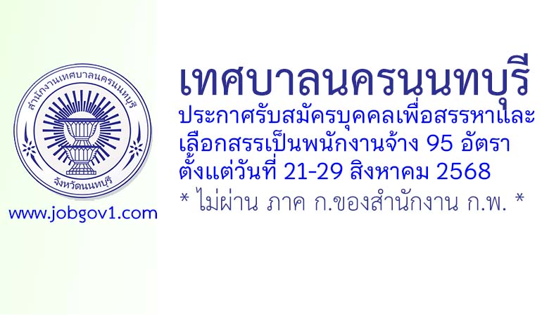 เทศบาลนครนนทบุรี รับสมัครบุคคลเพื่อสรรหาและเลือกสรรเป็นพนักงานจ้าง 95 อัตรา ตั้งแต่วันที่ 21-29 สิงหาคม 2568