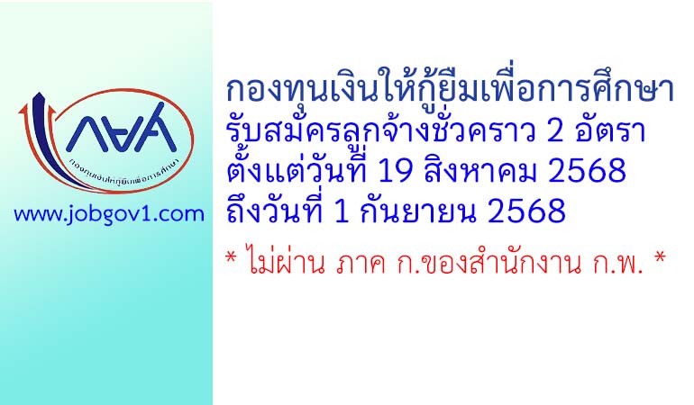 กองทุนเงินให้กู้ยืมเพื่อการศึกษา รับสมัครลูกจ้างชั่วคราว 2 อัตรา ตั้งแต่ 19 สิงหาคม – 1 กันยายน 2568