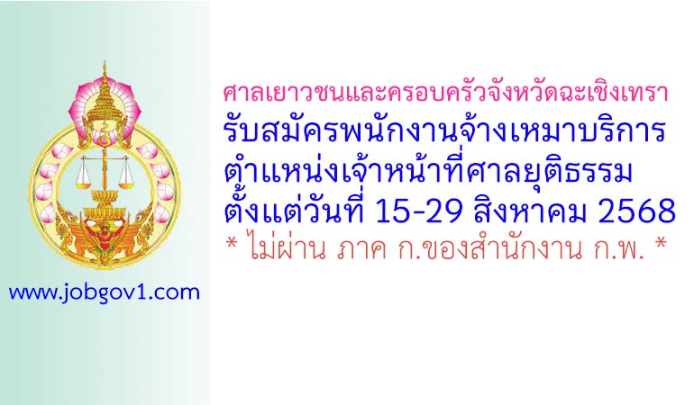 ศาลเยาวชนและครอบครัวจังหวัดฉะเชิงเทรา รับสมัครพนักงานจ้างเหมาบริการ ตำแหน่งเจ้าหน้าที่ศาลยุติธรรม ตั้งแต่วันที่ 15-29 สิงหาคม 2568