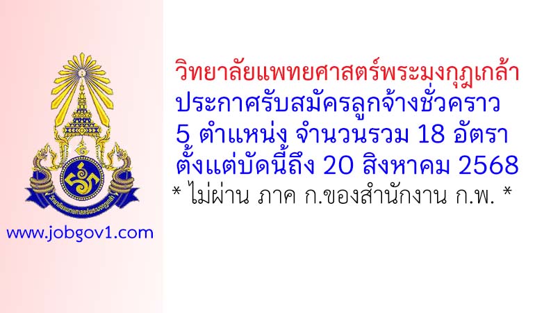 วิทยาลัยแพทยศาสตร์พระมงกุฎเกล้า รับสมัครลูกจ้างชั่วคราว 18 อัตรา ตั้งแต่บัดนี้ถึง 20 สิงหาคม 2568