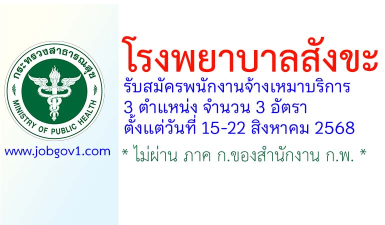 โรงพยาบาลสังขะ รับสมัครพนักงานจ้างเหมาบริการ 3 อัตรา ตั้งแต่วันที่ 15-22 สิงหาคม 2568