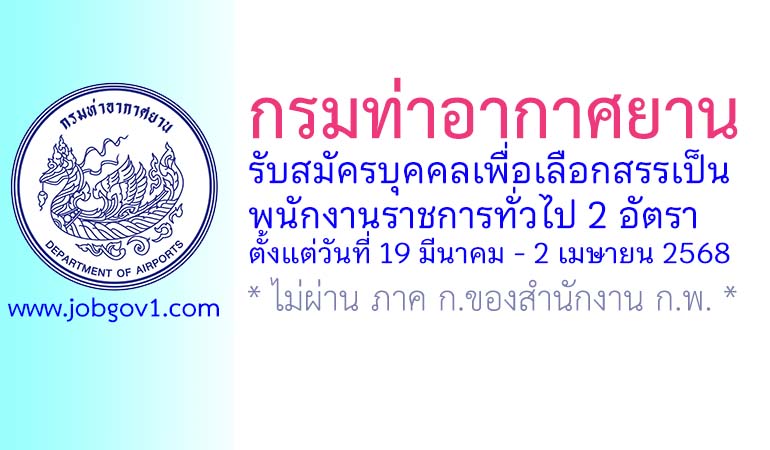 กรมท่าอากาศยาน รับสมัครบุคคลเพื่อเลือกสรรเป็นลูกจ้างทุนหมุนเวียน 3 อัตรา ตั้งแต่ 22 สิงหาคม – 15 กันยายน 2568