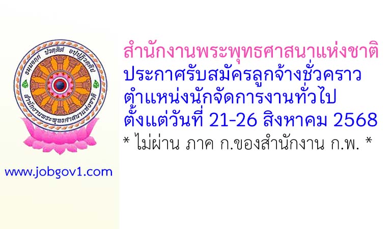 สำนักงานพระพุทธศาสนาแห่งชาติ รับสมัครลูกจ้างชั่วคราว ตำแหน่งนักจัดการงานทั่วไป ตั้งแต่วันที่ 21-26 สิงหาคม 2568