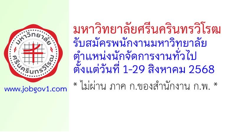 มหาวิทยาลัยศรีนครินทรวิโรฒ รับสมัครพนักงานมหาวิทยาลัย ตำแหน่งนักจัดการงานทั่วไป ตั้งแต่วันที่ 1-29 สิงหาคม 2568