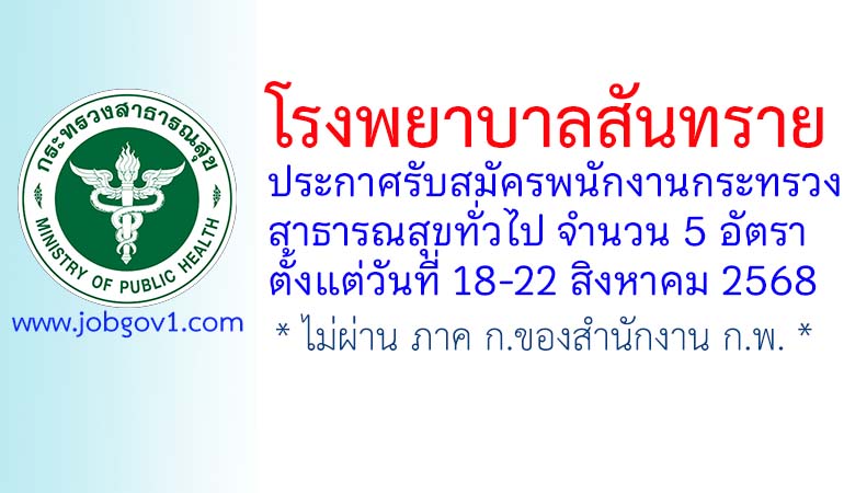 โรงพยาบาลสันทราย รับสมัครพนักงานกระทรวงสาธารณสุขทั่วไป 5 อัตรา ตั้งแต่วันที่ 18-22 สิงหาคม 2568