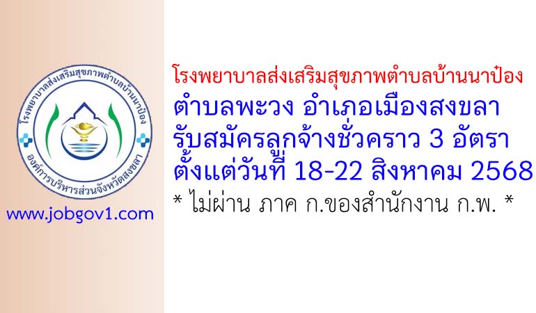 โรงพยาบาลส่งเสริมสุขภาพตำบลบ้านนาป๋อง รับสมัครลูกจ้างชั่วคราว 3 อัตรา ตั้งแต่วันที่ 18-22 สิงหาคม 2568