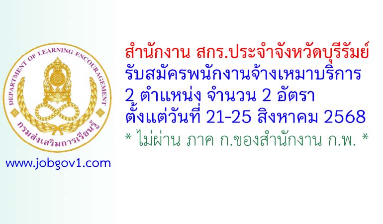 สำนักงาน สกร.ประจำจังหวัดบุรีรัมย์ รับสมัครพนักงานจ้างเหมาบริการ 2 อัตรา ตั้งแต่วันที่ 21-25 สิงหาคม 2568