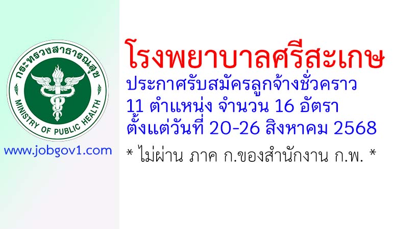โรงพยาบาลศรีสะเกษ รับสมัครลูกจ้างชั่วคราว 16 อัตรา ตั้งแต่วันที่ 20-26 สิงหาคม 2568