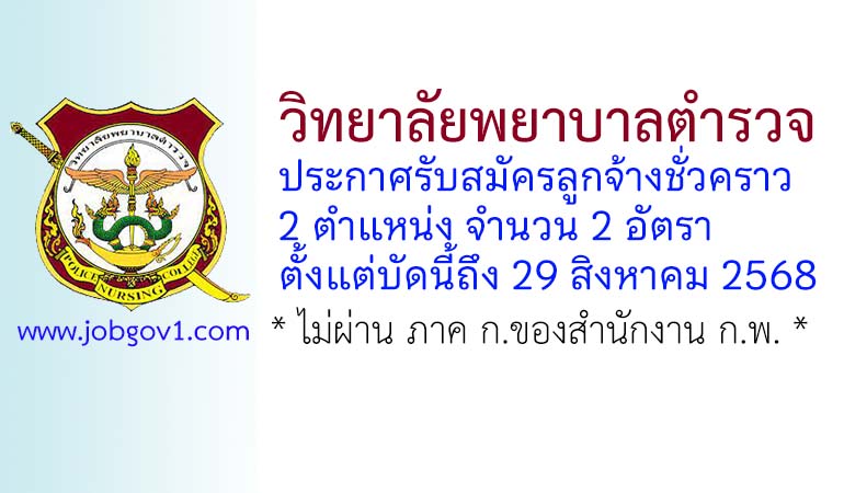 วิทยาลัยพยาบาลตำรวจ รับสมัครลูกจ้างชั่วคราว 2 อัตรา ตั้งแต่บัดนี้ถึง 29 สิงหาคม 2568