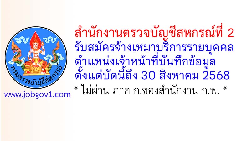 สำนักงานตรวจบัญชีสหกรณ์ที่ 2 รับสมัครจ้างเหมาบริการรายบุคคล ตำแหน่งเจ้าหน้าที่บันทึกข้อมูล ตั้งแต่บัดนี้ถึง 30 สิงหาคม 2568