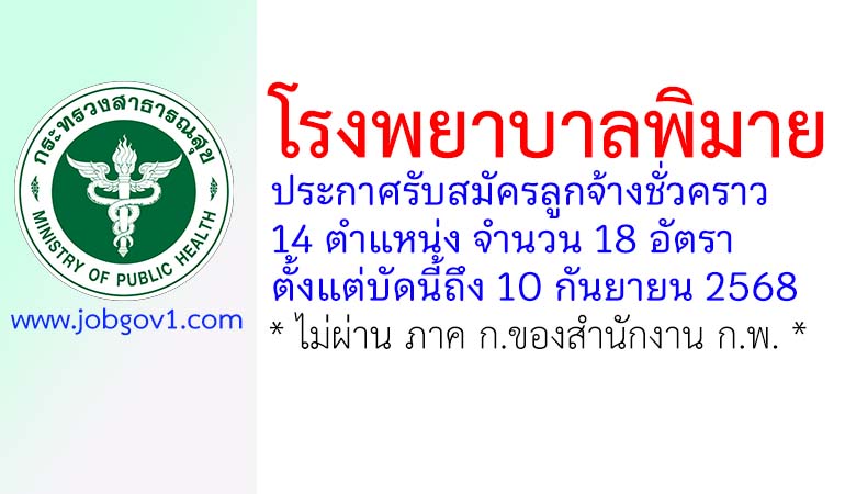 โรงพยาบาลพิมาย รับสมัครลูกจ้างชั่วคราว 18 อัตรา ตั้งแต่บัดนี้ถึง 10 กันยายน 2568