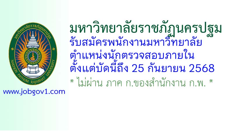 มหาวิทยาลัยราชภัฏนครปฐม รับสมัครพนักงานมหาวิทยาลัย ตำแหน่งนักตรวจสอบภายใน ตั้งแต่บัดนี้ถึง 25 กันยายน 2568