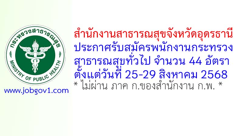 สำนักงานสาธารณสุขจังหวัดอุดรธานี รับสมัครพนักงานกระทรวงสาธารณสุขทั่วไป 44 อัตรา ตั้งแต่วันที่ 25-29 สิงหาคม 2568