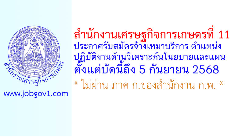 สำนักงานเศรษฐกิจการเกษตรที่ 11 รับสมัครจ้างเหมาบริการ ตำแหน่งปฏิบัติงานด้านวิเคราะห์นโนยบายและแผน