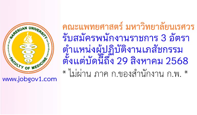 คณะแพทยศาสตร์ มหาวิทยาลัยนเรศวร รับสมัครพนักงานราชการ 3 อัตรา ตั้งแต่บัดนี้ถึง 29 สิงหาคม 2568