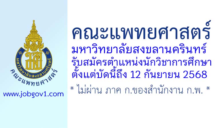 คณะแพทยศาสตร์ มหาวิทยาลัยสงขลานครินทร์ รับสมัครตำแหน่งนักวิชาการศึกษา ตั้งแต่บัดนี้ถึง 12 กันยายน 2568
