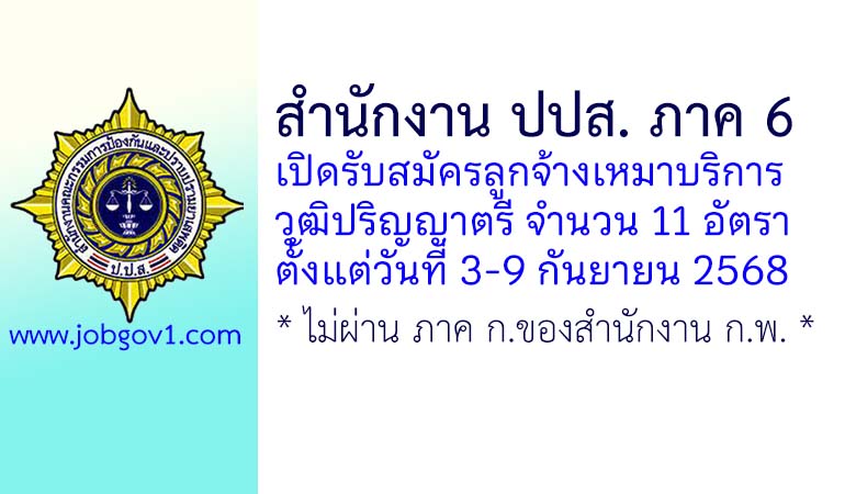 สำนักงาน ปปส. ภาค 6 รับสมัครลูกจ้างเหมาบริการ 11 อัตรา ตั้งแต่วันที่ 3-9 กันยายน 2568