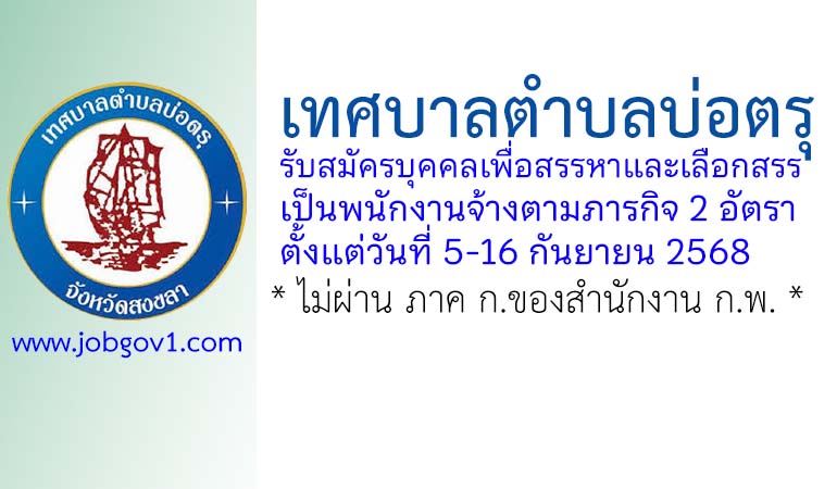 เทศบาลตำบลบ่อตรุ รับสมัครบุคคลเพื่อสรรหาและเลือกสรรเป็นพนักงานจ้างตามภารกิจ 2 อัตรา ตั้งแต่วันที่ 5-16 กันยายน 2568