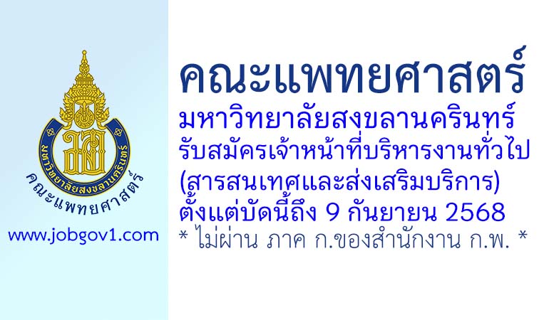 คณะแพทยศาสตร์ มหาวิทยาลัยสงขลานครินทร์ รับสมัครเจ้าหน้าที่บริหารงานทั่วไป (สารสนเทศและส่งเสริมบริการ) ตั้งแต่บัดนี้ถึง 9 กันยายน 2568