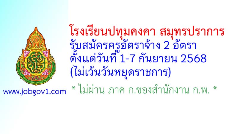 โรงเรียนปทุมคงคา สมุทรปราการ รับสมัครครูอัตราจ้าง 2 อัตรา ตั้งแต่วันที่ 1-7 กันยายน 2568