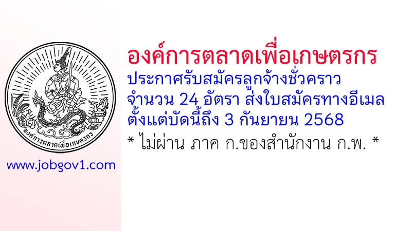 องค์การตลาดเพื่อเกษตรกร (อ.ต.ก.) รับสมัครลูกจ้างชั่วคราว 24 อัตรา ตั้งแต่บัดนี้ถึง 3 กันยายน 2568