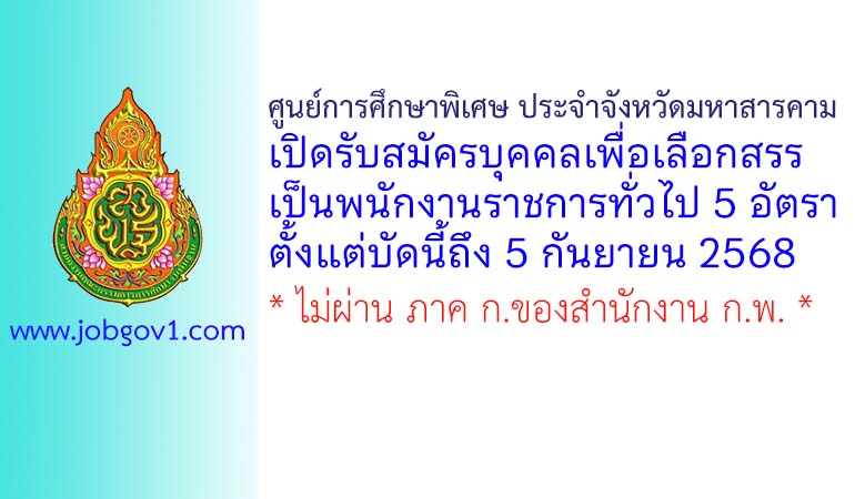 ศูนย์การศึกษาพิเศษ ประจำจังหวัดมหาสารคาม รับสมัครบุคคลเพื่อเลือกสรรเป็นพนักงานราชการทั่วไป 5 อัตรา ตั้งแต่บัดนี้ถึง 5 กันยายน 2568