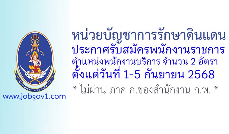 หน่วยบัญชาการรักษาดินแดน รับสมัครพนักงานราชการ ตำแหน่งพนักงานบริการ จำนวน 2 อัตรา ตั้งแต่วันที่ 1-5 กันยายน 2568
