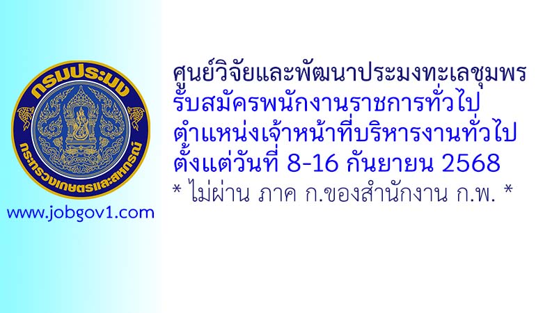 ศูนย์วิจัยและพัฒนาประมงทะเลชุมพร รับสมัครพนักงานราชการทั่วไป ตำแหน่งเจ้าหน้าที่บริหารงานทั่วไป ตั้งแต่วันที่ 8-16 กันยายน 2568