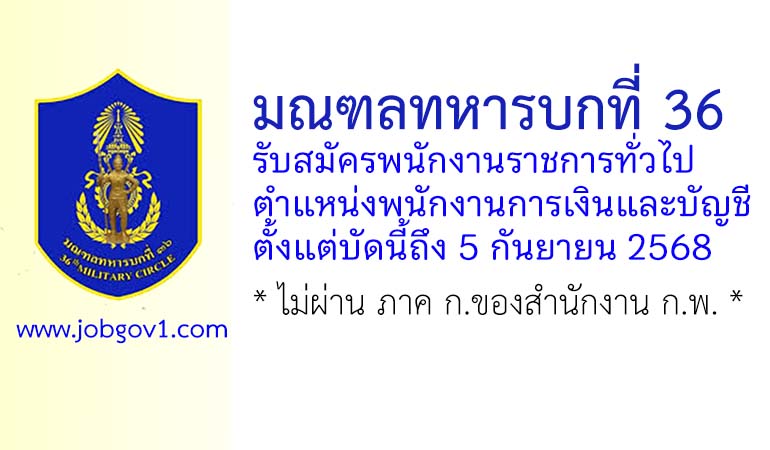 มณฑลทหารบกที่ 36 รับสมัครพนักงานราชการ ตำแหน่งพนักงานการเงินและบัญชี ตั้งแต่บัดนี้ถึง 5 กันยายน 2568