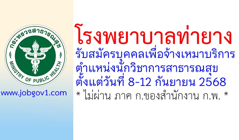 โรงพยาบาลท่ายาง รับสมัครบุคคลเพื่อจ้างเหมาบริการ ตำแหน่งนักวิชาการสาธารณสุข ตั้งแต่วันที่ 8-12 กันยายน 2568
