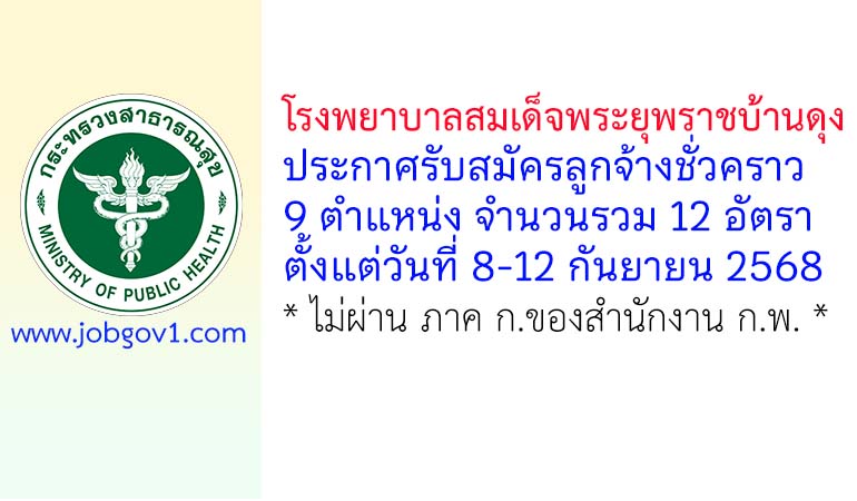 โรงพยาบาลสมเด็จพระยุพราชบ้านดุง รับสมัครลูกจ้างชั่วคราว 12 อัตรา ตั้งแต่วันที่ 8-12 กันยายน 2568
