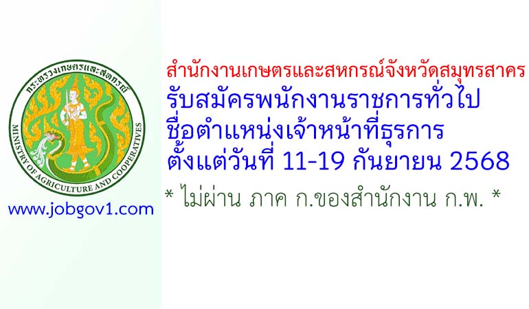 สำนักงานเกษตรและสหกรณ์จังหวัดสมุทรสาคร รับสมัครพนักงานราชการทั่วไป ตำแหน่งเจ้าหน้าที่ธุรการ ตั้งแต่วันที่ 11-19 กันยายน 2568
