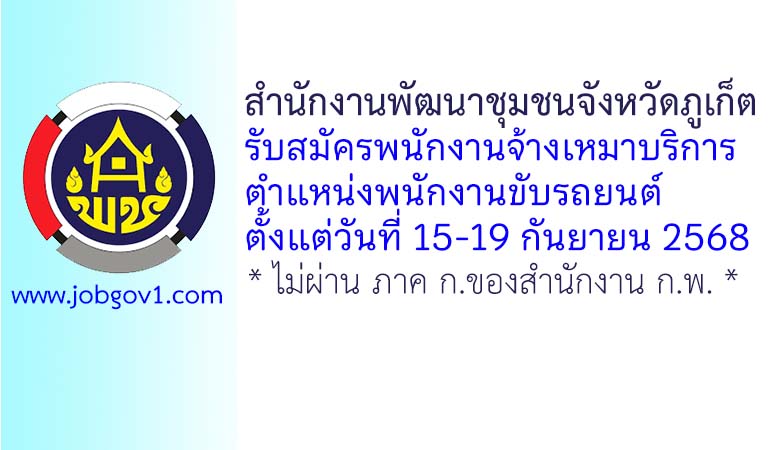สำนักงานพัฒนาชุมชนจังหวัดภูเก็ต รับสมัครพนักงานจ้างเหมาบริการ ตำแหน่งพนักงานขับรถยนต์ ตั้งแต่วันที่ 15-19 กันยายน 2568