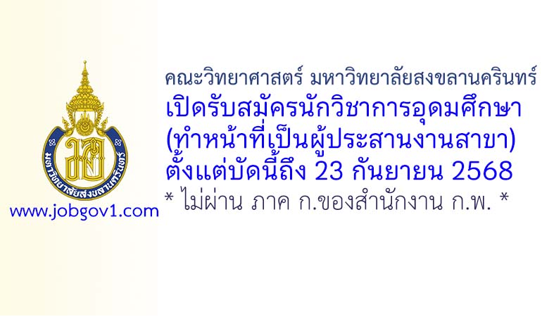 คณะวิทยาศาสตร์ มหาวิทยาลัยสงขลานครินทร์ เรื่อง รับสมัครนักวิชาการอุดมศึกษา (ทำหน้าที่เป็นผู้ประสานงานสาขา) ตั้งแต่บัดนี้ถึง 23 กันยายน 2568
