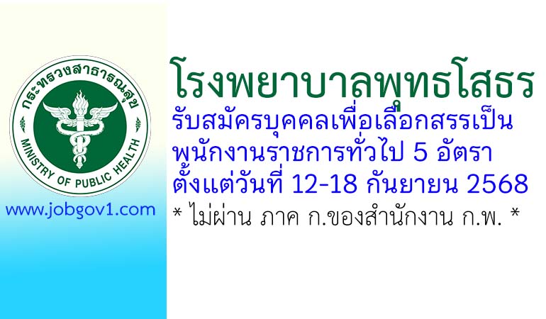 โรงพยาบาลพุทธโสธร รับสมัครบุคคลเพื่อเลือกสรรเป็นพนักงานราชการทั่วไป 5 อัตรา ตั้งแต่วันที่ 12-18 กันยายน 2568