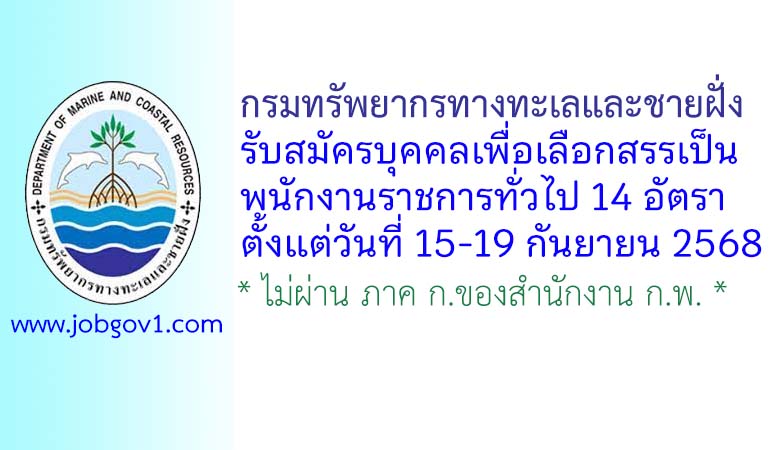 กรมทรัพยากรทางทะเลและชายฝั่ง รับสมัครบุคคลเพื่อเลือกสรรเป็นพนักงานราชการทั่วไป 14 อัตรา ตั้งแต่วันที่ 15-19 กันยายน 2568
