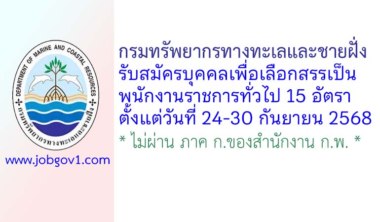 กรมทรัพยากรทางทะเลและชายฝั่ง รับสมัครบุคคลเพื่อเลือกสรรเป็นพนักงานราชการทั่วไป 15 อัตรา ตั้งแต่วันที่ 24-30 กันยายน 2568