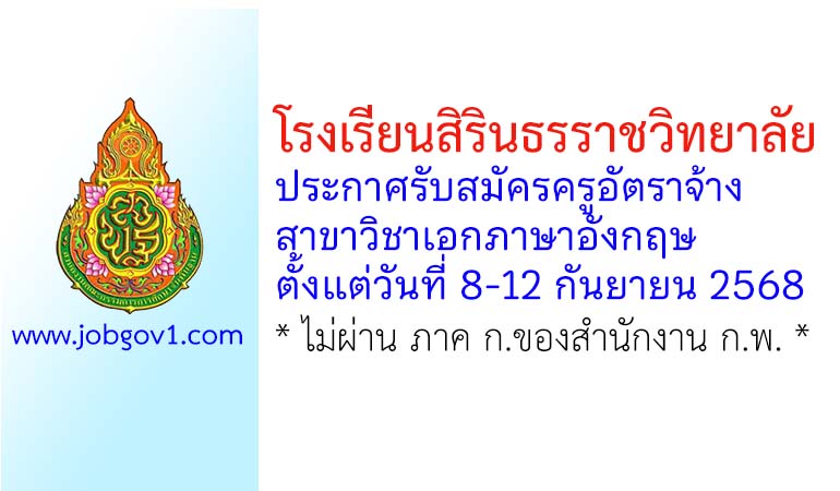 โรงเรียนสิรินธรราชวิทยาลัย รับสมัครครูอัตราจ้าง สาขาวิชาเอกภาษาอังกฤษ ตั้งแต่วันที่ 8-12 กันยายน 2568