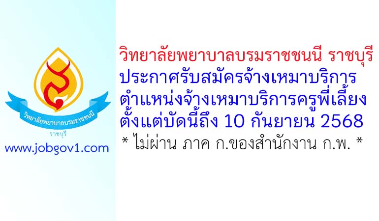 วิทยาลัยพยาบาลบรมราชชนนี ราชบุรี รับสมัครจ้างเหมาบริการ ตำแหน่งจ้างเหมาบริการครูพี่เลี้ยง ตั้งแต่บัดนี้ถึง 10 กันยายน 2568
