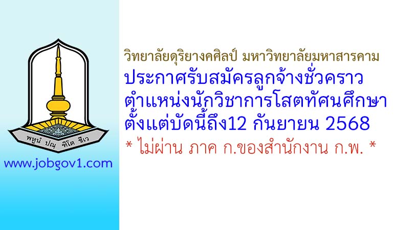วิทยาลัยดุริยางคศิลป์ มหาวิทยาลัยมหาสารคาม รับสมัครลูกจ้างชั่วคราว ตำแหน่งนักวิชาการโสตทัศนศึกษา ตั้งแต่บัดนี้ถึง 12 กันยายน 2568