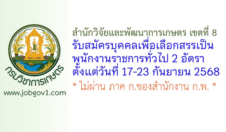 สำนักวิจัยและพัฒนาการเกษตร เขตที่ 8 จังหวัดสงขลา รับสมัครบุคคลเพื่อเลือกสรรเป็นพนักงานราชการทั่วไป 2 อัตรา ตั้งแต่วันที่ 17-23 กันยายน 2568