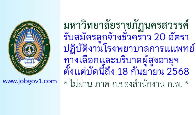 มหาวิทยาลัยราชภัฏนครสวรรค์ รับสมัครลูกจ้างชั่วคราว 20 อัตรา ตั้งแต่บัดนี้ถึง 18 กันยายน 2568