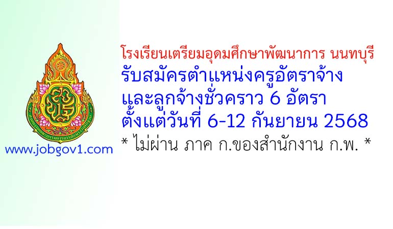 โรงเรียนเตรียมอุดมศึกษาพัฒนาการ นนทบุรี รับสมัครครูอัตราจ้าง และลูกจ้างชั่วคราว 6 อัตรา ตั้งแต่วันที่ 6-12 กันยายน 2568