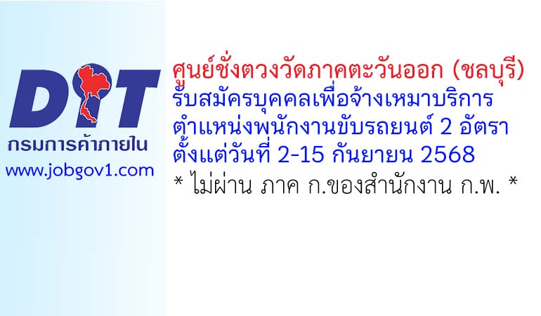 ศูนย์ชั่งตวงวัดภาคตะวันออก (ชลบุรี) รับสมัครบุคคลเพื่อจ้างเหมาบริการ ตำแหน่งพนักงานขับรถยนต์ 2 อัตรา ตั้งแต่วันที่ 2-15 กันยายน 2568