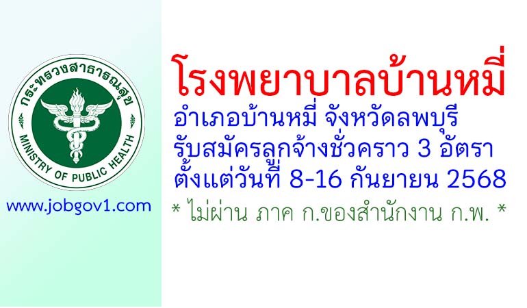 โรงพยาบาลบ้านหมี่ รับสมัครลูกจ้างชั่วคราว 3 อัตรา ตั้งแต่วันที่ 8-16 กันยายน 2568